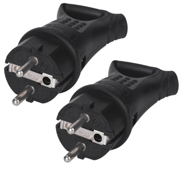 Samostatná zástrčka pro montáž ke vhodnému zařízení na 230 V nebo ke kabelu. Zástrčka je typu UNISCHUKO s uzemněním v drážkách po straně zástrčky. Ochrana IP44, voděodolné, lze používat i venku.