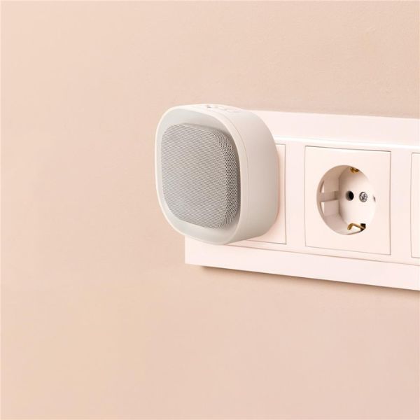- 1. Tlačítko se symbolem Slunce: Zvonek má na přední straně pod mírně vystupujícím reproduktorem zabudované led osvětlení, které svítí do bílého zakřiveného lemu reproduktoru, jenž světlo lomí a rozptyluje. Tímto tlačítkem světlo zapnete nebo vypnete. Pokud je zapnuté, tak nesvítí pořád. Pouze, když zvonek zazvoní, spustí se světelná signalizace. Lem zvonku v takovém případě bliká teplým bílým světlem.