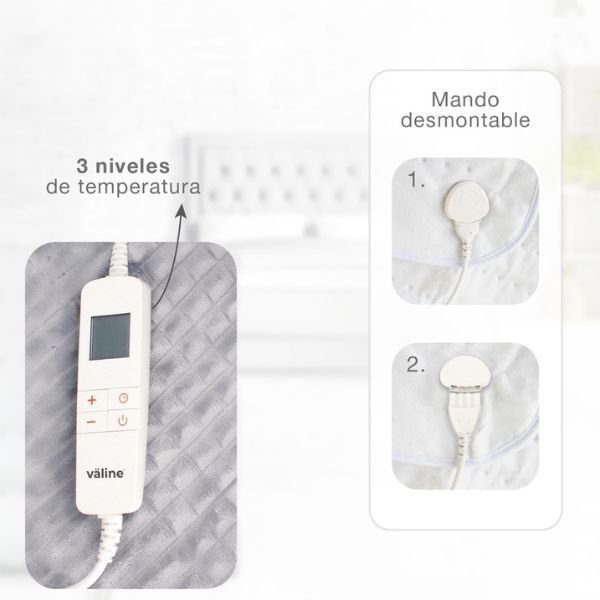 Vyhřívaná deka je pratelná na 30°C. Napájecí kabel je odpojitelný, což výrazně usnadňuje údržbu. Délka bílého napájecího kabelu do zásuvky je 2,3 m, což poskytuje dostatek flexibility při používání.