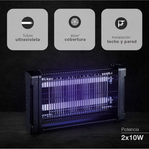 Lapač je vybaven 2 ultrafialovými trubicemi, které účinně lákají hmyz. Široké otevření konstrukce umožňuje, aby komáři a další létající hmyz vnikali do zařízení z jakéhokoli úhlu, což výrazně zvyšuje celkovou účinnost.