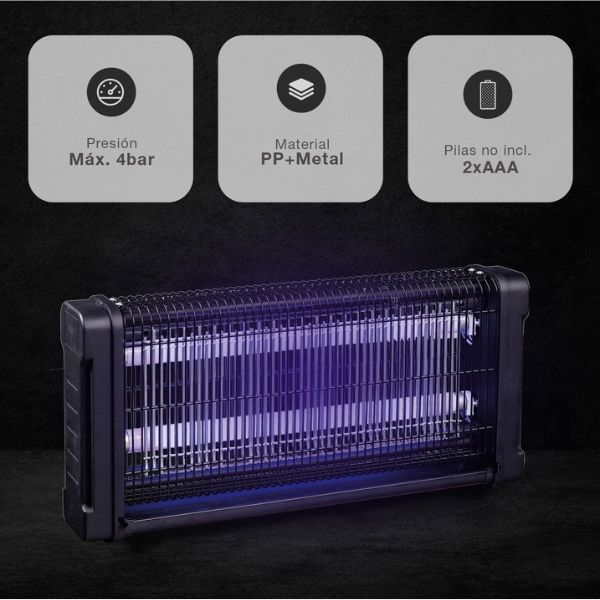 Lapač je vybaven 2 ultrafialovými trubicemi, které účinně lákají hmyz. Široké otevření konstrukce umožňuje, aby komáři a další létající hmyz vnikali do zařízení z jakéhokoli úhlu, což výrazně zvyšuje celkovou účinnost.