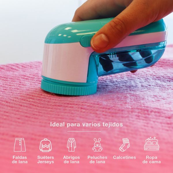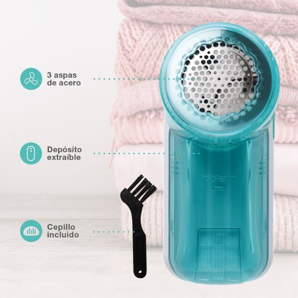 Odstraňovač je vybaven vyjímatelným zásobníkem na žmolky, který lze snadno vyprázdnit. Součástí je také ochranný kryt a čisticí kartáček, které usnadňují údržbu a prodlužují životnost přístroje.