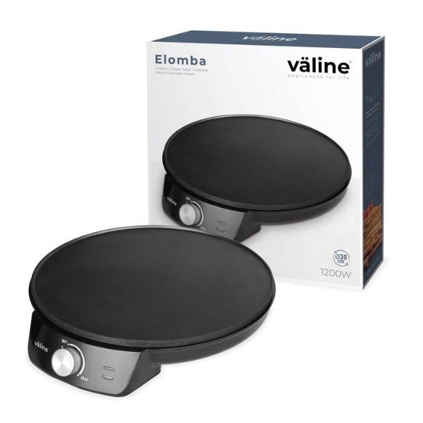 Elektrický palačinkovač Väline Elomba je ideální volbou pro rychlou a pohodlnou domácí přípravu palačinek, omelet i sázených vajec. S průměrem pečicí desky 30 cm a příkonem 1200 W nabízí dostatek prostoru i síly pro rovnoměrné propečení.