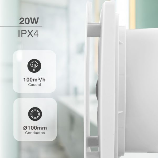 Pokud se ve vašem prostoru drží vlhkost, tento ventilátor zajistí dostatečné proudění vzduchu a zabrání vzniku plísní i nepříjemných pachů. Je navržen pro montáž do potrubí o průměru 100 mm a dosahuje sacího výkonu 62 m3/h, což je optimální hodnota pro menší místnosti.