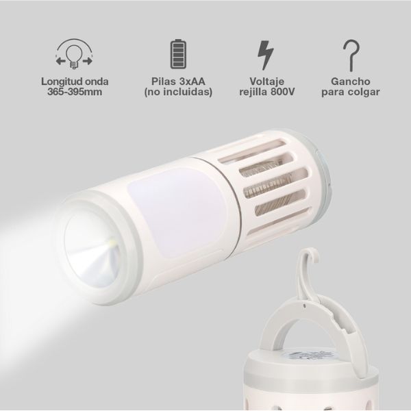 Svítilna je vybavena UV LED světlem o vlnové délce 365–395 nm, které účinně přitahuje létající hmyz, zejména komáry. Po kontaktu s elektrickou mřížkou o napětí 800 V dojde k jeho okamžité likvidaci. Lapač pokryje prostor až 30 m2 a funguje bez použití chemických látek.