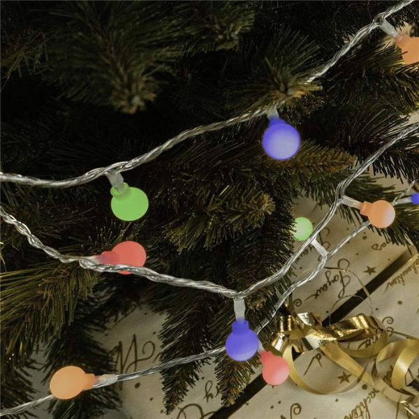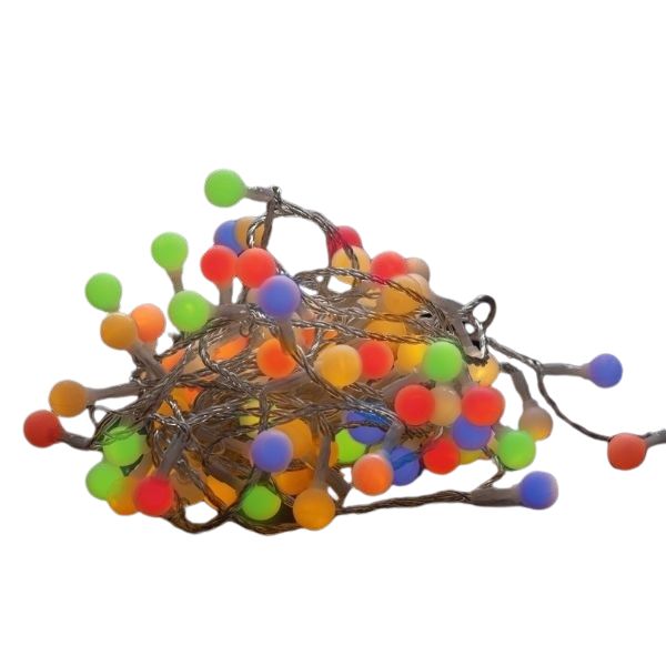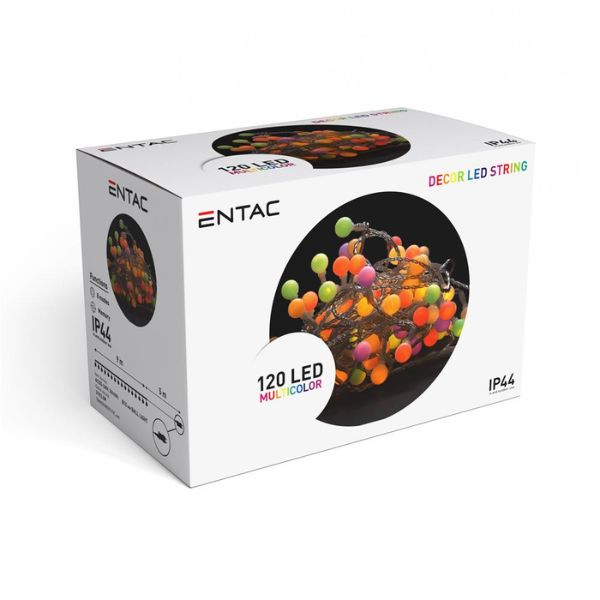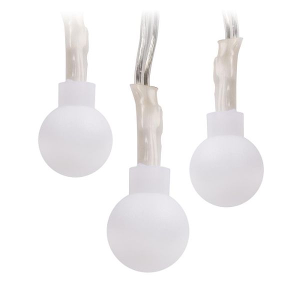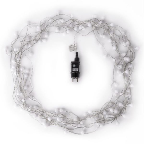 Elegantní vánoční řetěz sestává z 9m dlouhého průhledného kabelu se 120 barevnými LED diodami v podobě bílých kuliček o průměru 1,5cm. Vánoční řetěz je ukončen přívodním kabelem o délce dalších 5m, dosáhne tedy bez problémů k nejbližší zásuvce.