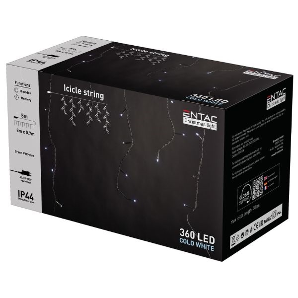 Německá značka Entac: Venkovní vánoční osvětlení za skvělou cenu! Jedná o vysoce úsporný LED vánoční závěs o výkonu pouze 6W, se zástrčkou do zásuvky na 220-240V. Je to tedy kompletní vánoční řetěz, k němuž nemusíte nic dalšího dokupovat.