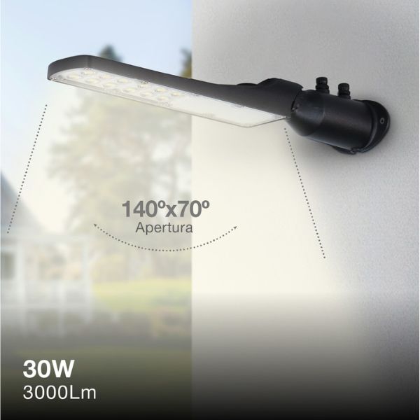 Svítidlo nabízí světelný tok 2700 lm, který zajistí dostatečné osvětlení menších venkovních ploch při zachování rozumné spotřeby energie. Je vhodné i pro instalaci do vyšší výšky, přibližně okolo 5 metrů, kde stále poskytuje kvalitní a prakticky využitelné světlo pro běžný provoz i vyšší bezpečnost pohybu osob a vozidel.