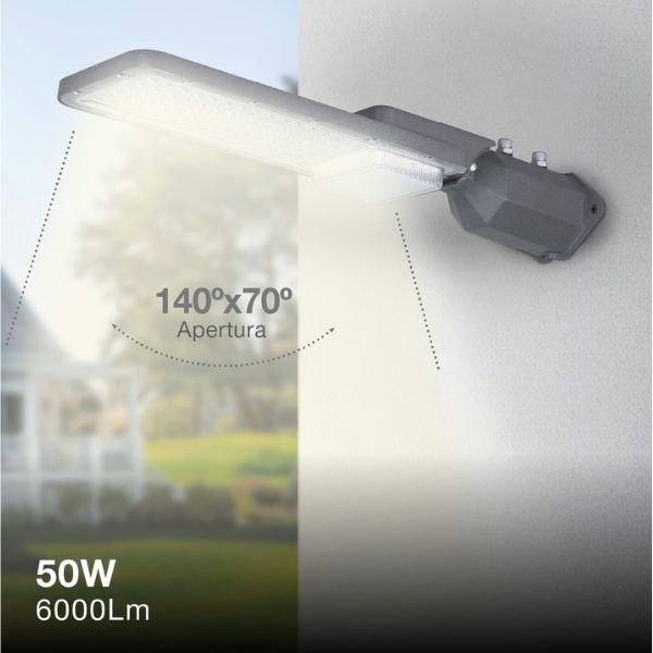 Speciální optika s vyzařovacím úhlem 70° a 140° je navržena tak, aby světlo rovnoměrně dopadalo na komunikace, parkovací místa, dvory nebo příjezdové cesty bez zbytečných ztrát. Každá LED dioda je umístěna pod silnou čočkou difuzoru, která pomáhá světlo lépe směrovat a rozprostřít do požadovaného prostoru.