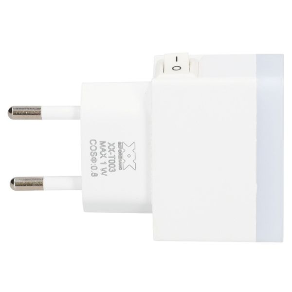 Toto noční světlo svítí studené bílou barvou světla. Výhodou je malá velikost, přibližně jako nabíječka telefonu.