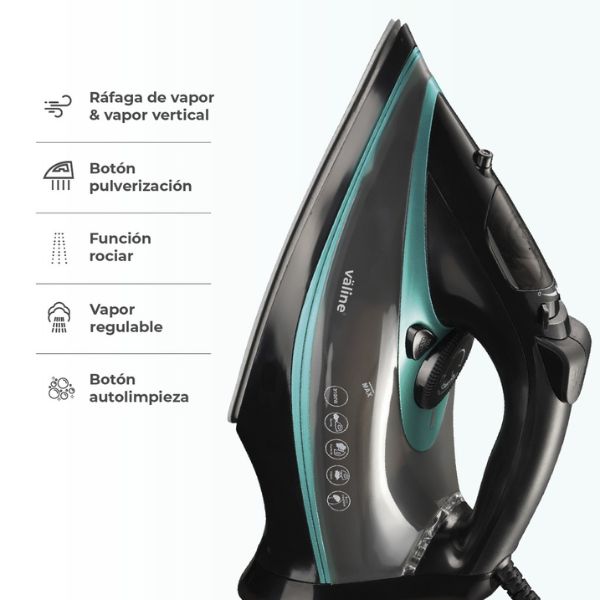 Žehlička Väline Kusura má 380ml nádržku s průhledným designem pro snadnou kontrolu hladiny vody a 1,9 m dlouhý napájecí kabel černé barvy s 360° otočným kloubem, díky čemuž se při žehlení nekroutí a neomezuje v pohybu. Ergonomický tvar, světelná kontrolka a nízká hmotnost (1,4 kg) zaručují pohodlné používání každý den.