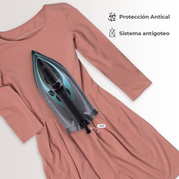 - Výkon 3100W – špičkový výkon zajišťuje rychlé zahřátí a silný výstup páry pro snadné odstranění i odolných záhybů.
