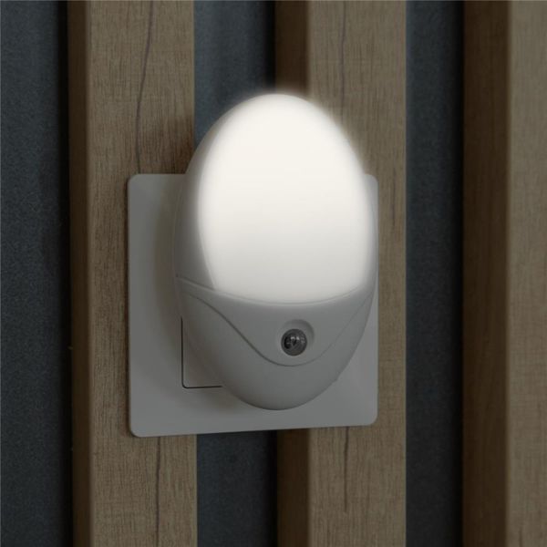 Toto noční světlo nemá vypínač, nemusíte se o nic starat. Stačí jej pouze zasunout do zásuvky a o provoz se postará soumrakový senzor, který rozezná intenzitu světla v místnosti, při soumraku se noční světlo rozsvítí a bude svítit do svítání, kdy samo zhasne. Dosah světla je cca 1m a svítí velmi jemně, pouze orientačně, takže neruší ani při spánku.