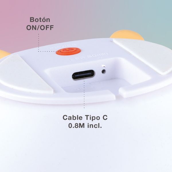 Lampička nevyžaduje přímé napájení ze zásuvky během používání, takže je bezpečná a praktická. Figurka je měkká, gumová, nehrozí poranění. Díky dobíjecí baterii si ji můžete vzít kamkoliv v místnosti. Nabíjecí USB-C kabel je součástí balení.
