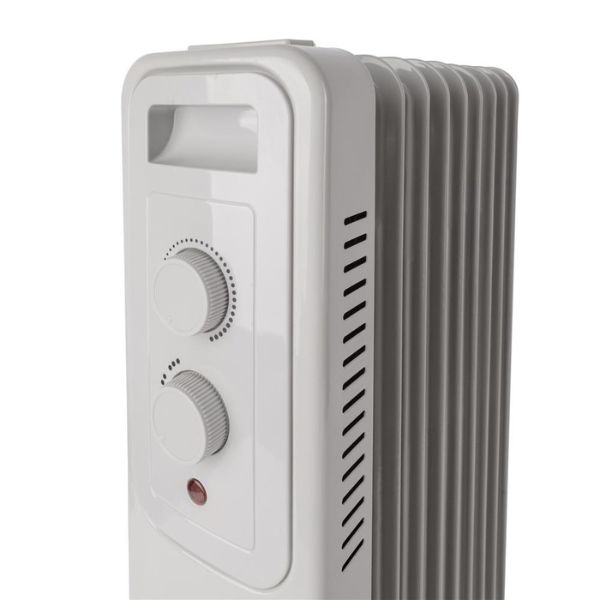 Olejový radiátor má otočný termostat, který umožňuje regulovat teplotu. Jakmile radiátor dosáhne nastavené teploty, termostat přeruší přívod elektřiny do topného tělesa, čímž šetří energii. Pokud teplota klesne pod určenou hranici, termostat znovu zapne topné těleso.