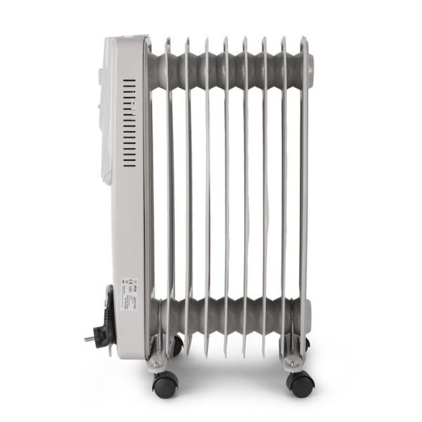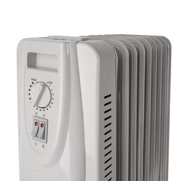 Olejový radiátor má otočný termostat, který umožňuje regulovat teplotu. Jakmile radiátor dosáhne nastavené teploty, termostat přeruší přívod elektřiny do topného tělesa, čímž šetří energii. Pokud teplota klesne pod určenou hranici, termostat znovu zapne topné těleso.
