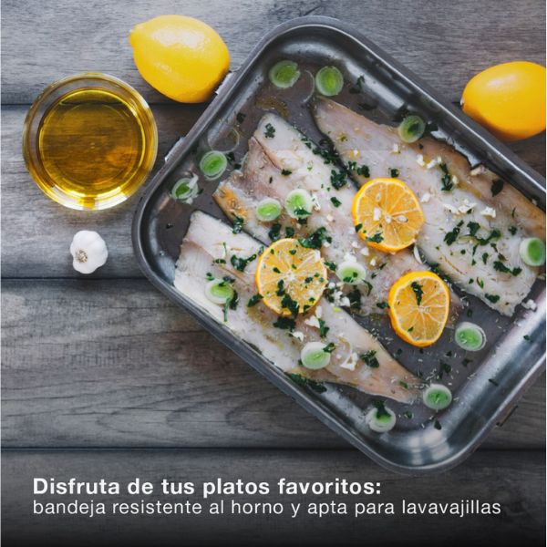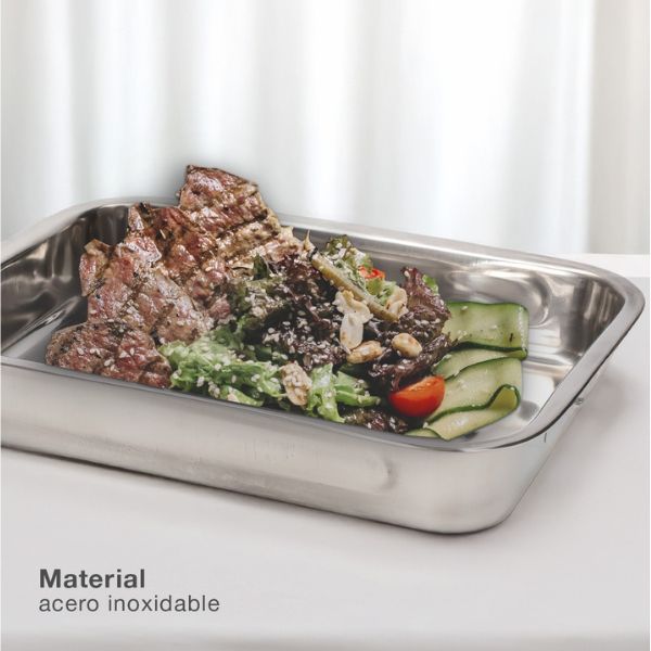 Pekáč je vyroben z kvalitní nerezové oceli, která zajišťuje vysokou odolnost, snadnou údržbu a dlouhou životnost. Velkou výhodou jsou sklopná ucha, která usnadňují manipulaci při vkládání do trouby i vyjímání hotového pokrmu a zároveň šetří místo při skladování.