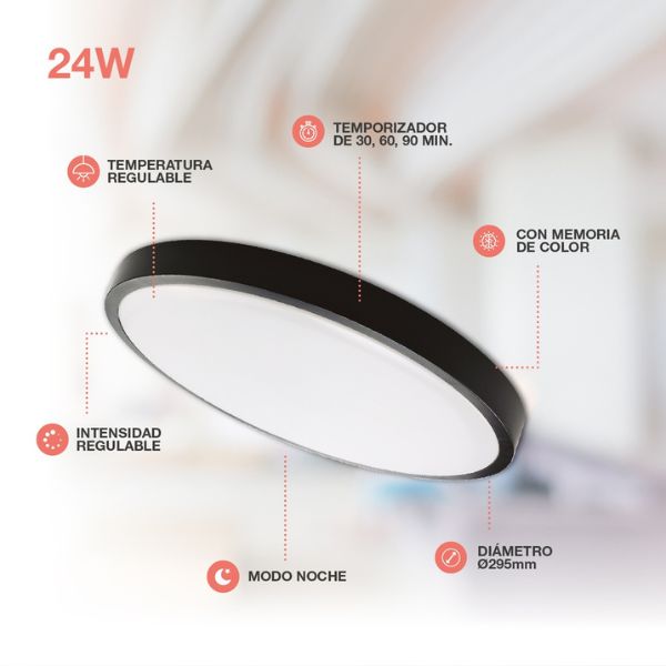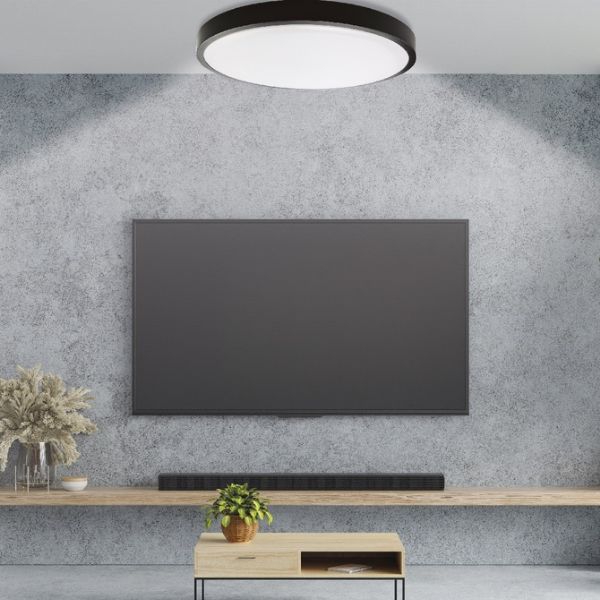 Svítidlo zaujme kombinací černého rámu a mléčného difuzoru, který zajišťuje rovnoměrné rozptýlení světla bez oslnění. Kulatý tvar a čisté linie umožňují snadné začlenění do moderních interiérů, jako jsou obývací pokoje, ložnice, chodby nebo kanceláře.