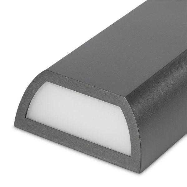 Prémiové led venkovní nástěnné svítidlo pro montáž na zeď se spotřebou pouze 8W, fungující na napětí 220-240V. Toto venkovní svítidlo svítí denní barvou světla, která je podobná barvě slunečního svitu přes den. Nástěnné svítidlo osvětluje z vrchní i spodní strany fasádu nebo zeď, na níž je instalováno, ať již vertikálně, horizontálně nebo šikmo - podle toho, jak jej připevníte, a vytváří tak na fasádě zajímavý designový prvek.