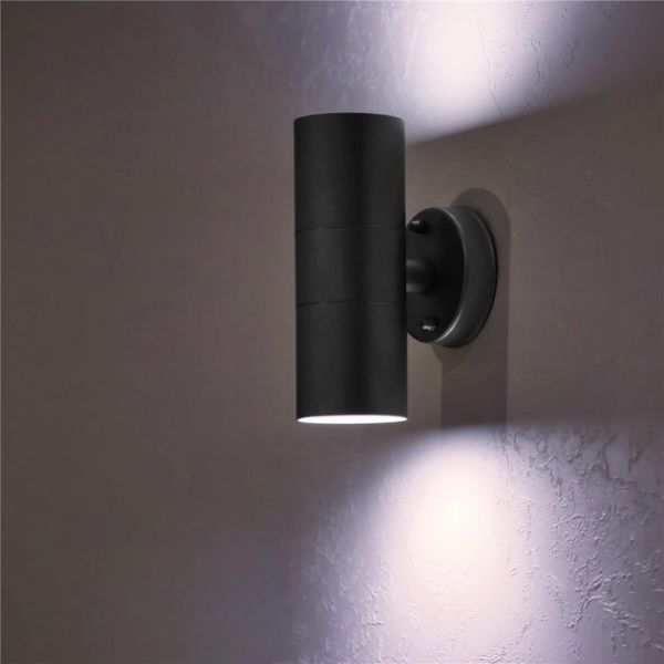 Prémiové venkovní nástěnné svítidlo na 2 led žárovky bodovky s paticí GU10 o příkonu max 10W každá, fungující na napětí 220-240V.