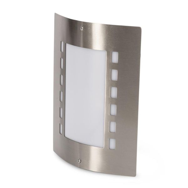 Toto venkovní svítidlo ve je perfektním řešením pro osvětlení vchodu do domu, pergoly, terasy, apod. Jedná se o kvalitní venkovní svítidlo, jehož designová přední část je vyrobena z nerezové oceli. Kryt žárovky je vyroben z mléčně zbarveného plastu, který je odolnější proti prasknutí, než sklo a světlo lampy Vás neoslní.