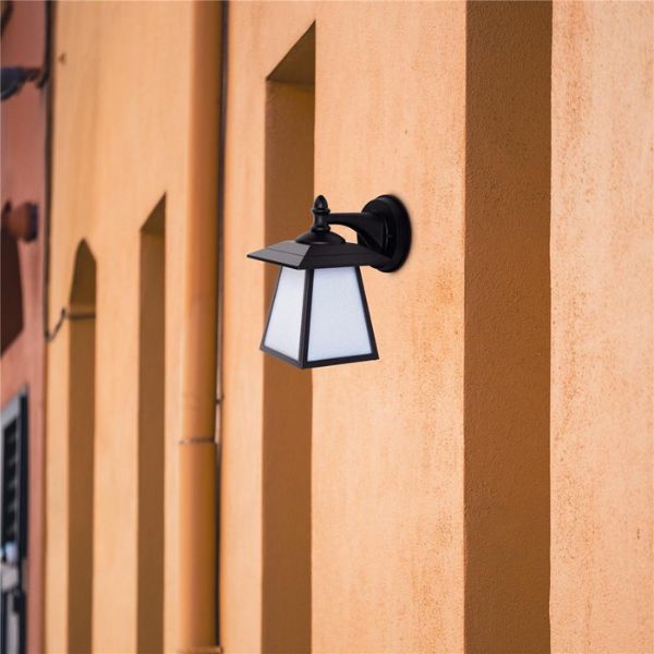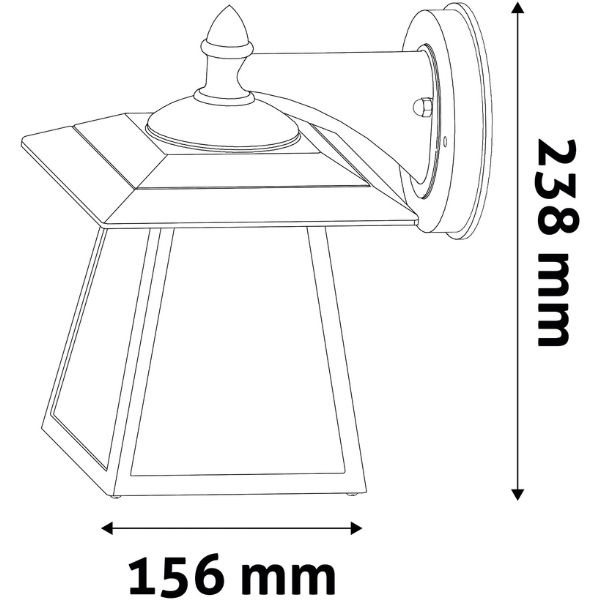Toto venkovní svítidlo ve tvaru lucerny je perfektním řešením pro osvětlení vchodu do domu, pergoly, terasy, apod. Jedná se o kvalitní venkovní svítidlo jehož robustní tělo je vyrobeno z práškově lakovaného hliníku, který nikdy nezrezne. Narozdíl od levných plastových venkovních nástěnných svítidel, která působením venkovních podmínek, zejména slunečního záření, postupně křehnou, mění barvu a rozpadají se, tohle se Vám s tím naším opravdu nestane. Kryt žárovky je vyroben z mléčně zbarveného plastu, který je odolnější proti prasknutí, než sklo a světlo lampy Vás neoslní. Kryt rozptyluje světlo pouze do stran, nesvítí směrem dolu.