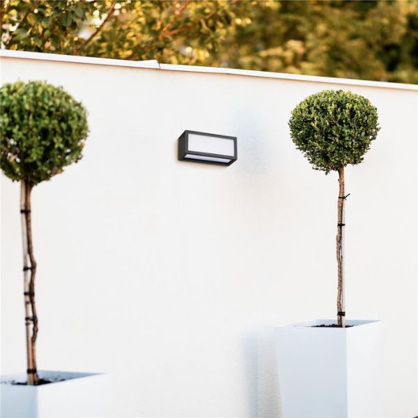 Toto venkovní svítidlo ve je perfektním řešením pro osvětlení vchodu do domu, pergoly, terasy, apod. Jedná se o kvalitní venkovní svítidlo jehož robustní tělo je vyrobeno z práškově lakovaného hliníku, který nikdy nezrezne. Kryt žárovky je vyroben z mléčně zbarveného plastu, který je odolnější proti prasknutí, než sklo a světlo lampy Vás neoslní. Světlo prochází kryty na přední straně a též po obou stranách svítidla.