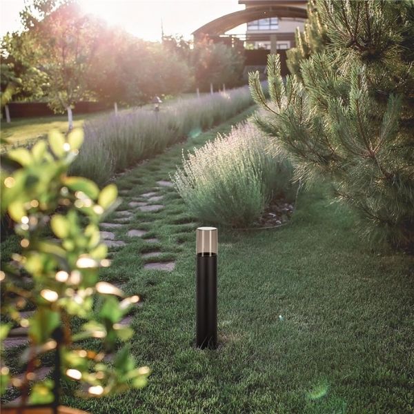 Tento kulatý světelný zahradní sloupek je perfektním řešením pro osvětlení příjezdové cesty nebo cestiček v zahradě, doma, u hotelu, apod. Jedná se o kvalitní venkovní svítidlo vyrobené z práškově lakované nerezové oceli. Narozdíl od levných plastových sloupků, které působením venkovních podmínek, zejména slunečního záření, postupně křehnou, mění barvu a rozpadají se, tohle se Vám s naším venkovním sloupkem opravdu nestane. Kryt žárovky je vyroben z kouřově zbarveného plastu, který je odolnější proti prasknutí, než sklo. Kryt rozptyluje světlo nejen do stran, ale i směrem nahoru. Perfektně v něm vyniknou designové retro led žárovky.