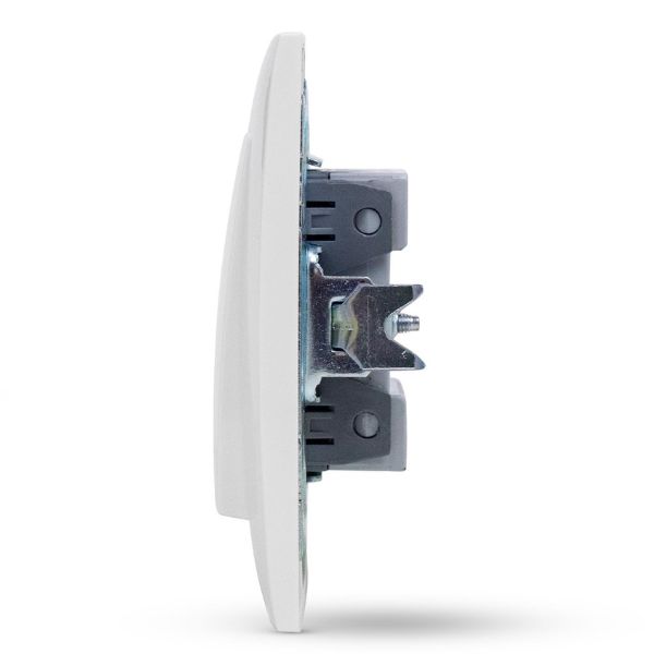 Přepínač má bílou barvu, rozměry 82x82mm, montážní hloubka 250mm. Přepínač je určený do interiéru, krytí IP20. Jedná se o komplet se strojkem a rámečkem.