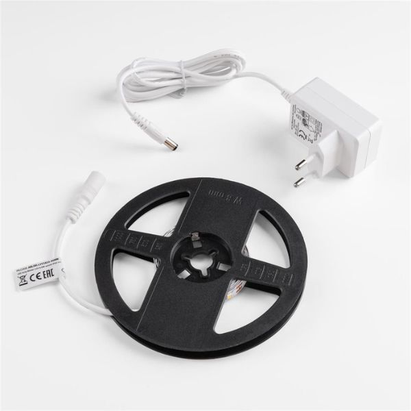 Jedná se o ucelenou sadu, která obsahuje 2m obyčejného led pásku se samolepící zadní stranou k přilepení na odmaštěný povrch. V případě potřeby lze led pásek zkrátit. Led pásek je ukončen konektorem, který připojíte do přiloženého napájecího zdroje. Napájecí zdroj bílé barvy má příkon 12W, což je ideální pro napájení tohoto led pásku. Jedná se o napájecí zdroj do zásuvky, podobný nabíječce telefonu.