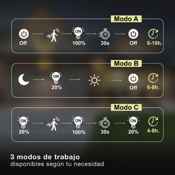 Solární LED reflektor má 3 režimy svícení: