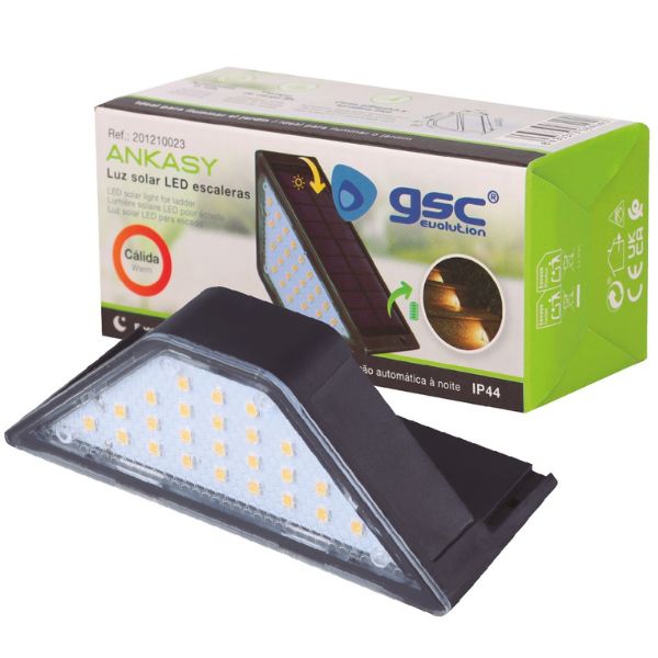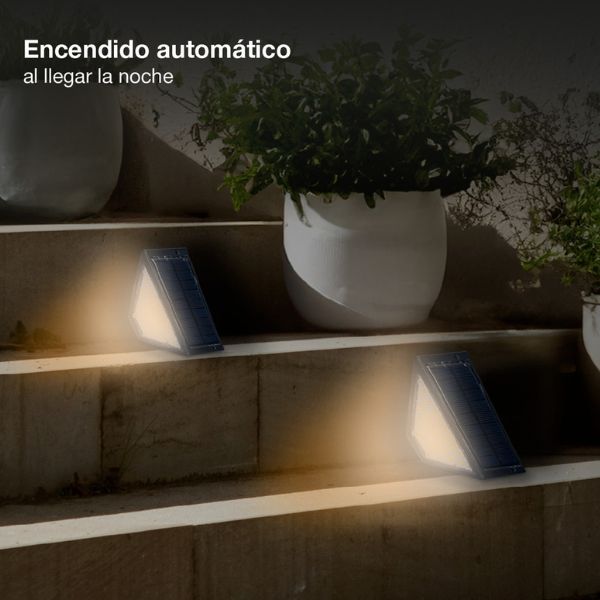 Solární světlo na schody pro automatické orientační osvětlení venkovního schodiště po setmění. Toto solární světlo má zabudovaný senzor stmívání - jakmile se setmí, začne samo svítit slabým teplým světlem, které osvítí své blízké okolí.