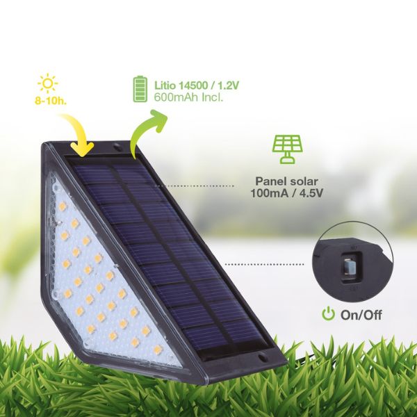 Tato solární lampa má stupeň krytí IP44, je tudíž plně uzpůsobena běžnému venkovnímu použití na vaší zahradě. Úsporný LED zdroj světla sestává z 24 LED diod. Solární světlo je vyrobeno z odolného plastu.