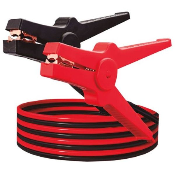 Vodiče jsou vyrobeny z poměděného hliníku, který zajišťuje dobrý přenos proudu při zachování nízké hmotnosti kabelů. Izolované svorky s pružinami umožňují pevné a bezpečné uchycení ke kontaktům baterie a snižují riziko zkratu při manipulaci.