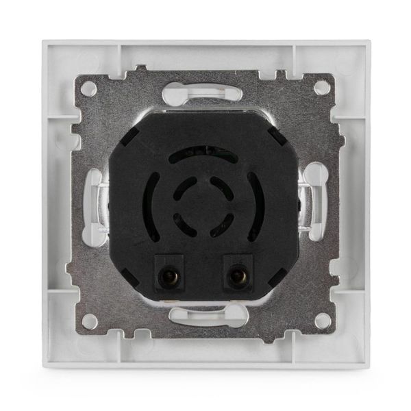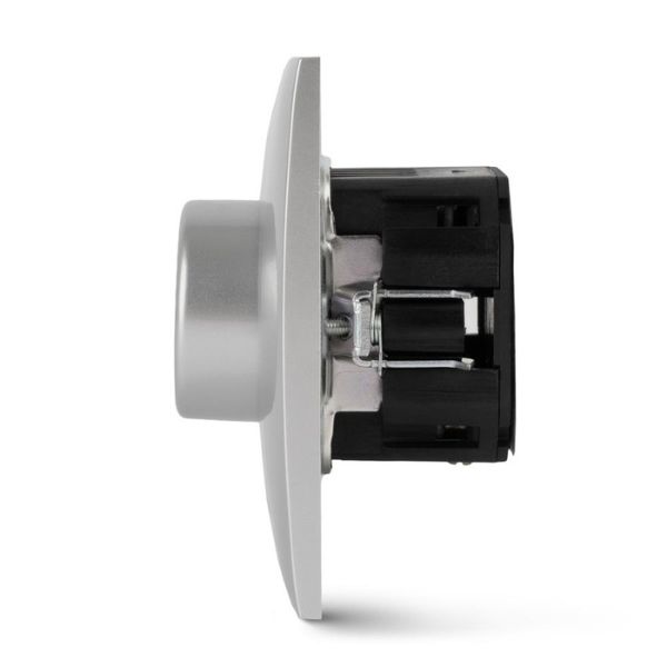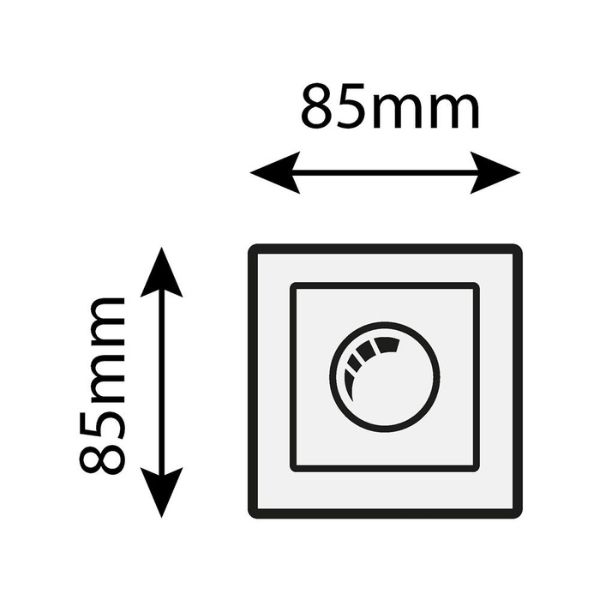Stmívač má elegantní stříbrnou barvu, rozměry 82x82mm. Hloubka do zdi je 30mm. Stmívač je určený do interiéru, krytí IP20. Jedná se o komplet se strojkem a rámečkem.