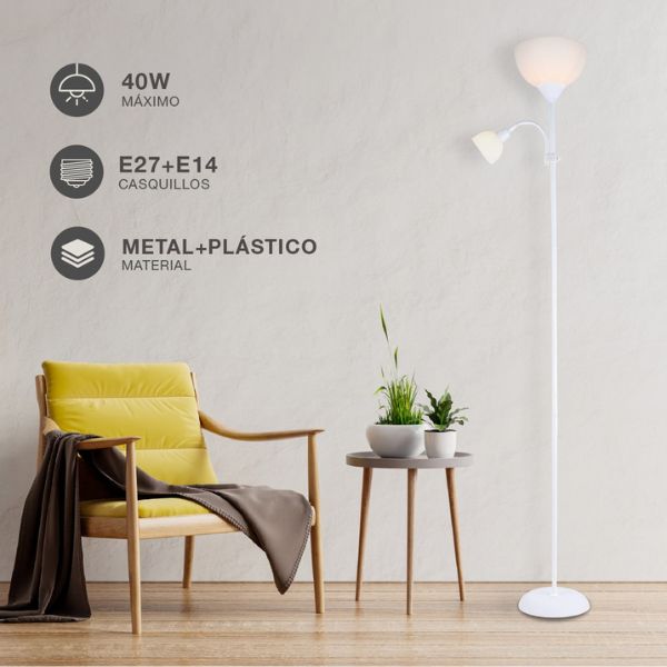 Stojací lampa Nawis 1760 mm E27 s lampičkou na čtení E14 bílá