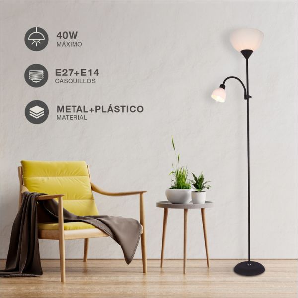 Stojací lampa Nawis 1760 mm E27 s lampičkou na čtení E14 černá