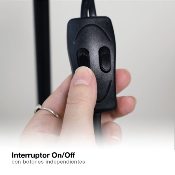 Lampa je vybavena napájecím kabelem o délce 1,5 m, který umožňuje pohodlné umístění i dále od zásuvky. Vypínač stojací lampy, který ovládá každou žárovku zvlášť, je umístěn na kabelu.
