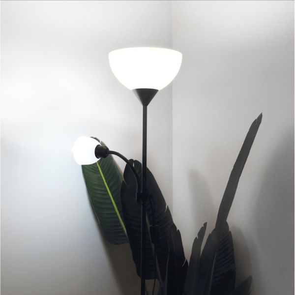 Lampa je vybavena horním kloboukem pro žárovku E27, který svítí směrem nahoru a vytváří příjemné ambientní osvětlení místnosti. Boční menší klobouk pro žárovku E14 slouží jako lampička na čtení nebo práci. Žárovky nejsou součástí balení, můžete si vybrat z našeho širokého sortimentu LED žárovek takové, které Vám vyhovují.