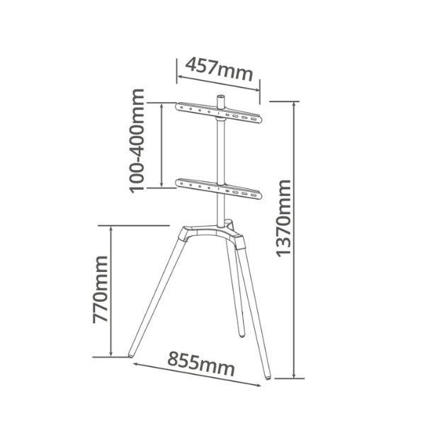 - Výška 1370 mm: optimální výška pro pohodlné sledování z gauče či postele, která lze snížit podle potřeby na 1100 mm v závislosti na velikosti televizoru.