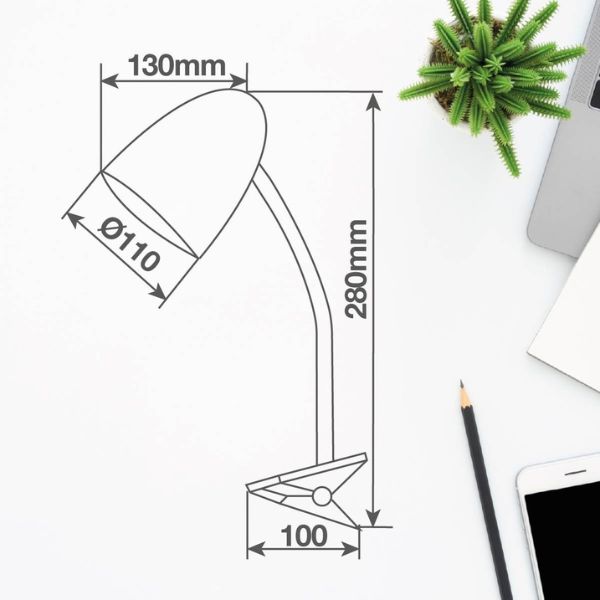 Díky praktickému klipovému řešení můžete tuto stolní lampičku snadno uchytit na okraj stolu, postele, poličky nebo jiný vhodný povrch.