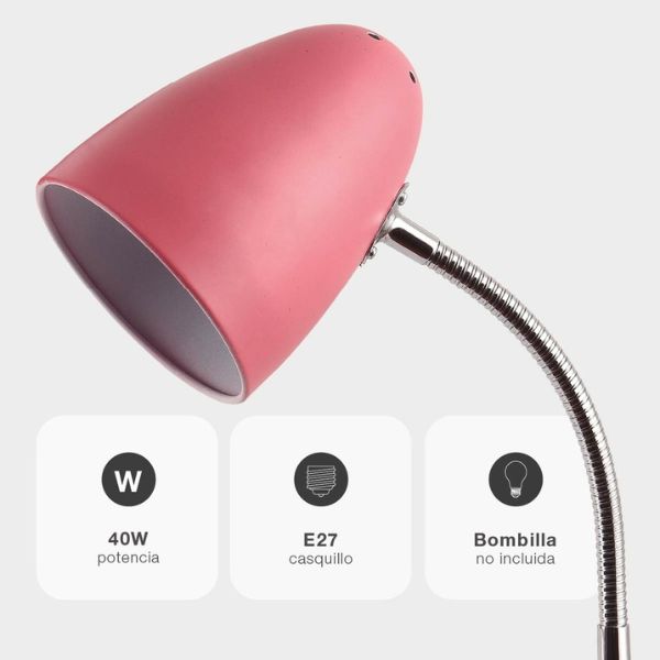 Stolní lampa s klipem v růžové barvě od španělské značky GSC, která se specializuje na designové produkty s nekompromisní kvalitou za dostupné ceny. Tato stolní lampička má proto od výrobce prodlouženou záruku na 3 roky.