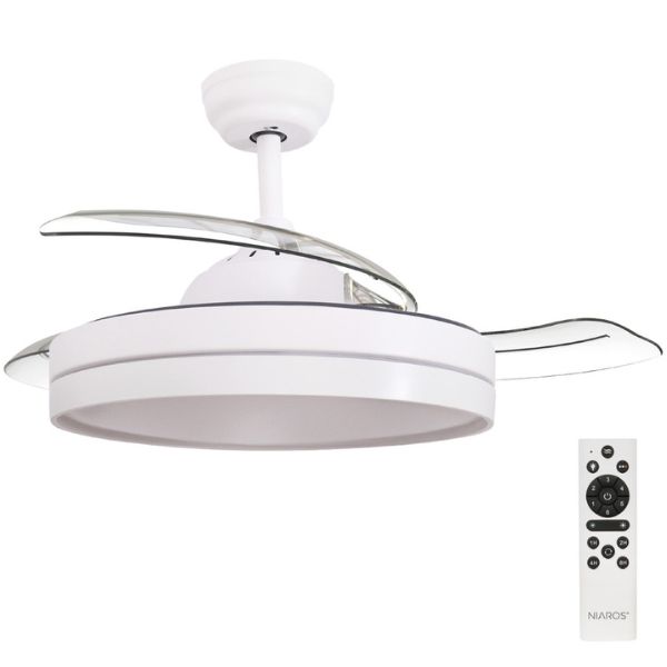 Stropní ventilátor s LED osvětlením Niaros Lugela 107 cm bílý stmívatelný