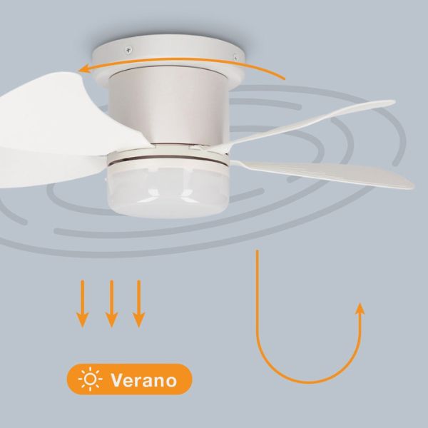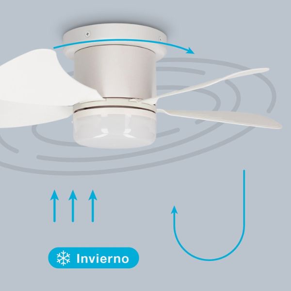 Stropní ventilátor přepnete buď na letní provoz, kdy tlačí vzduch dolů pro chlazení. Anebo zapnete zimní provoz při kterém se změní směr otáčení lopatek a ventilátor bude naopak nasávat vzduch nahoru a smíchávat ho s teplým vzduchem, který se drží u stropu, čímž se rovnoměrněji rozvede teplo po místnosti.