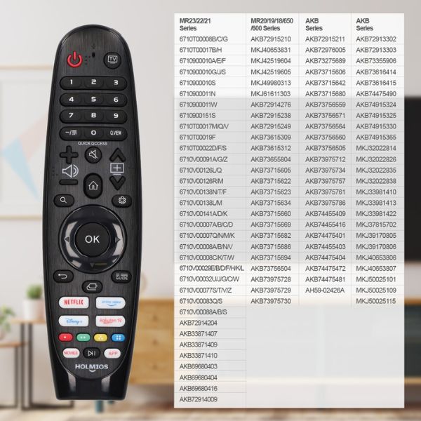Toto univerzální dálkové ovládání LG Smart TV můžete použít jako náhradu za tyto série typů dálkových ovládání od LG: