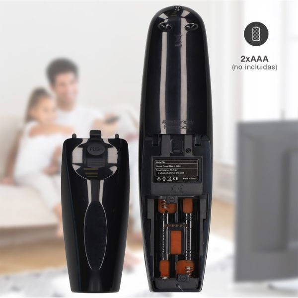 Dálkové ovládání je napájeno 2 mikrotužkovými bateriemi AAA, které nejsou součástí balení, ale můžete je u nás přikoupit.