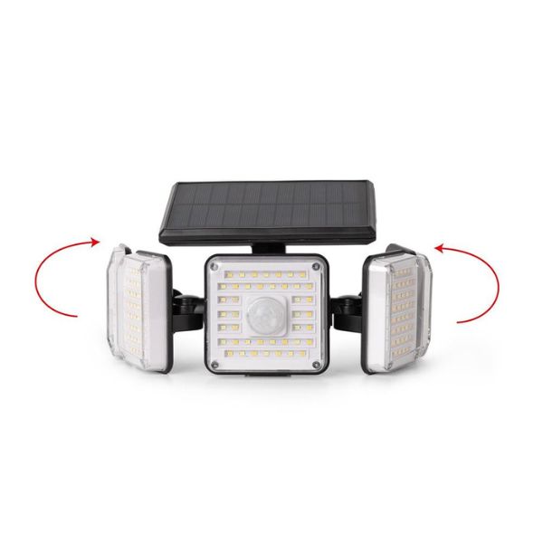 Tento solární led reflektor má pět světelných těles, každé je na kloubu a lze si tak upravit směr, kterým bude svítit.