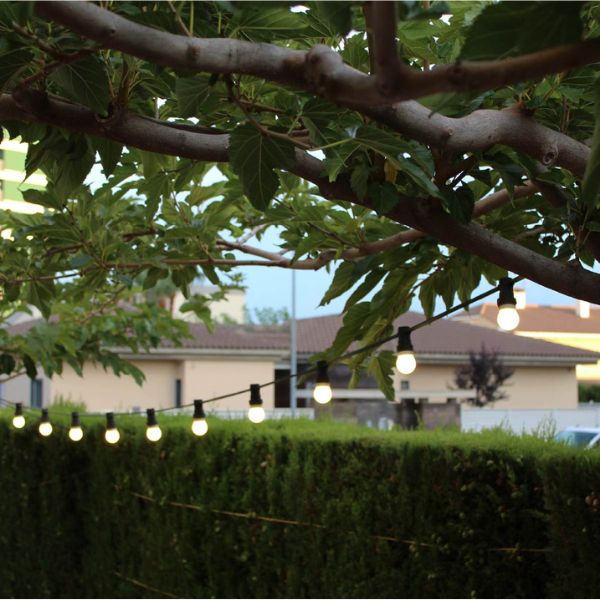 Venkovní světelné řetězy jsou oblíbené jako stylové osvětlení terasy, pergoly, zahrady, párty stanů a díky možnosti propojení také jako osvětlení vánočních stromů ve městech a obcích. Do těchto světelných girland se skvěle hodí naše barevné a retro led žárovky.