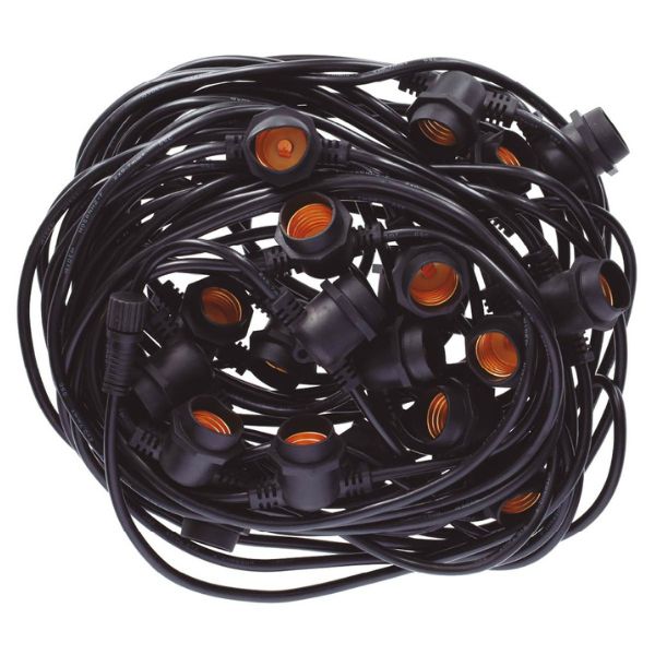 Světelná girlanda s objímkami E27 o délce 22m určená pro venkovní použití. Tento světelný řetěz má 20 samostatných objímek E27 s gumovou izolací, díky které jsou objímky chráněny před vniknutím vody. Tuto girlandu je možné vzájemně propojovat s obdobnými světelnými řetězy od GSC. Lze tak vytvořit až 200m dlouhý světelný řetěz s maximálním příkonem 700W. Do jedné objímky lze montovat žárovku s maximálním příkonem 30W.