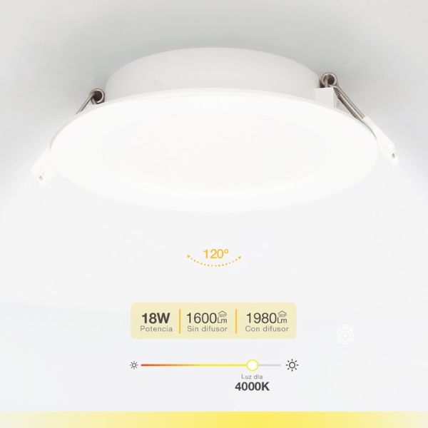 Kruhový vestavný LED panel se spotřebou 18W, fungující na napětí 230V.
